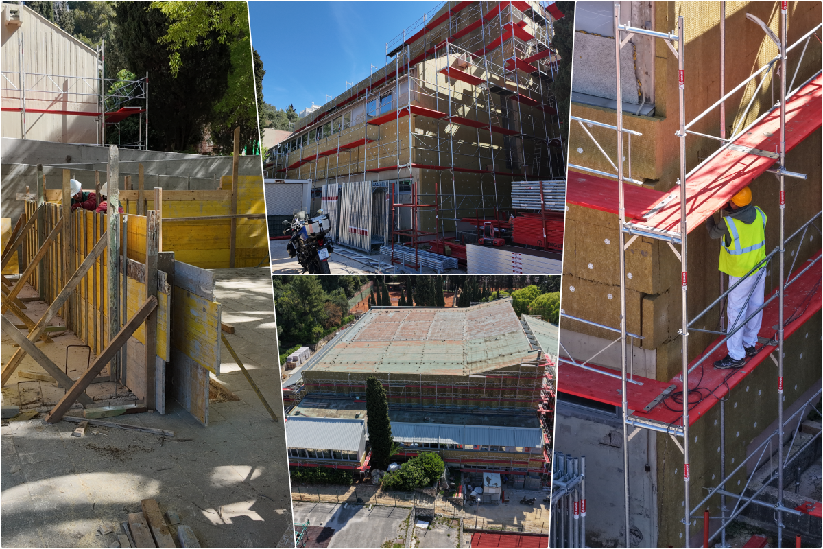 Na tri pročelja objekta ugrađena je mineralna vuna dok su paralelno izvedeni radovi na polaganju glavnih energetskih kabela za napajanje dizalica topline i buduće fotonaponske elektrane. Također, dovršeni su radovi na termičkoj izolaciji prema negrijanim prostorima te instalacijskim trasama u strojarnici.