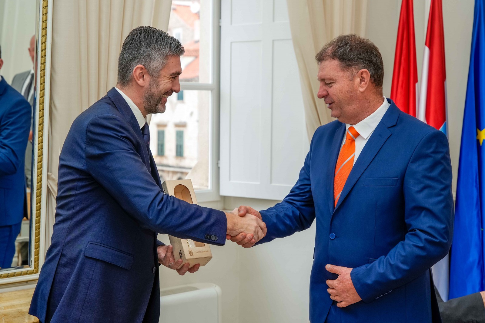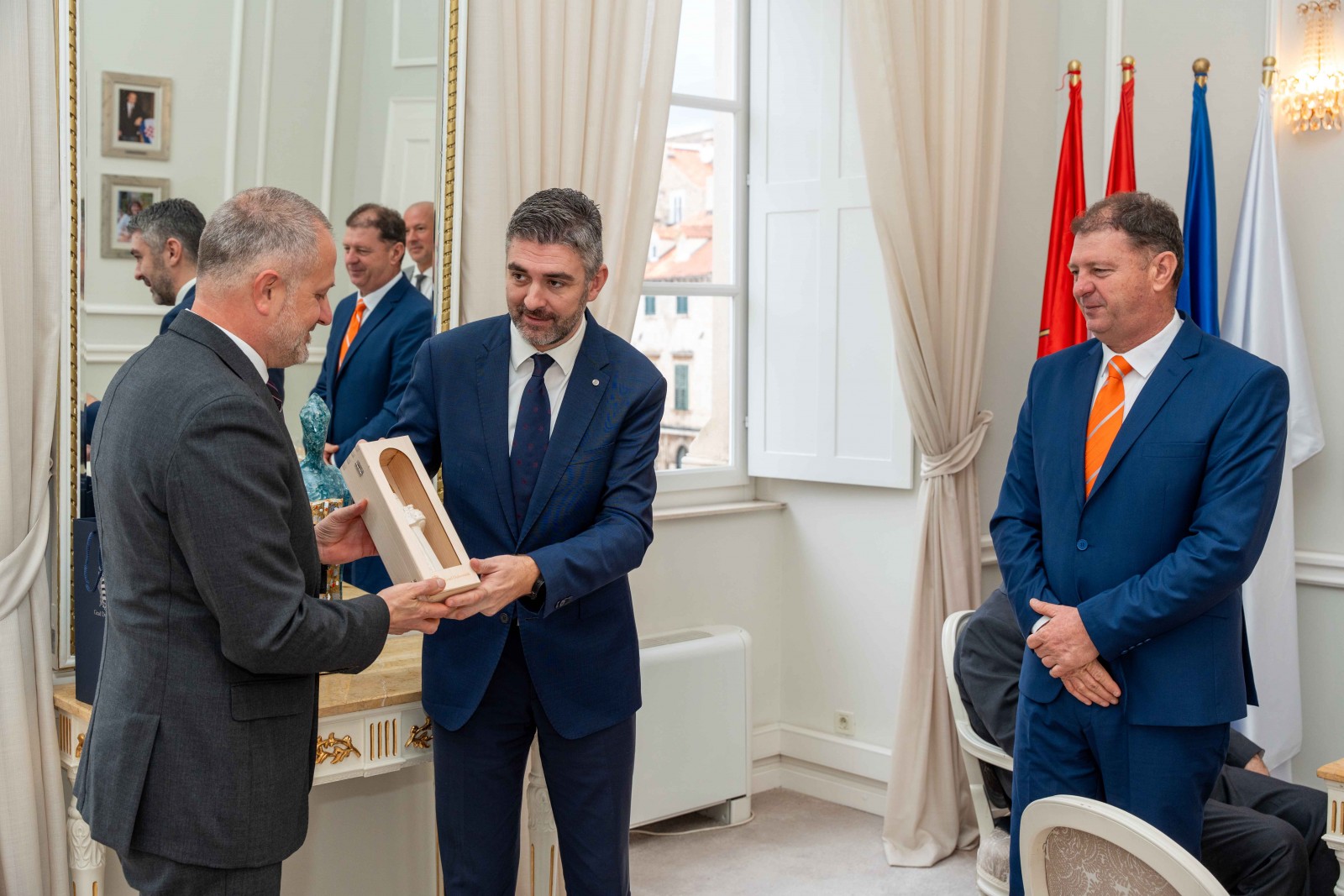 Gradonačelnik Grada Dubrovnika Mato Franković i zamjenik gradonačelnika Velibor Puzović primili su danas ovogodišnje festanjule Feste svetog Vlaha, iz reda pomoraca Mara Čoića te iz reda obrtnika Nika Prokuricu, koje je dubrovački biskup Glasnović prethodno imenovao na prijedlog Bratovštine festanjula svetog Vlaha.