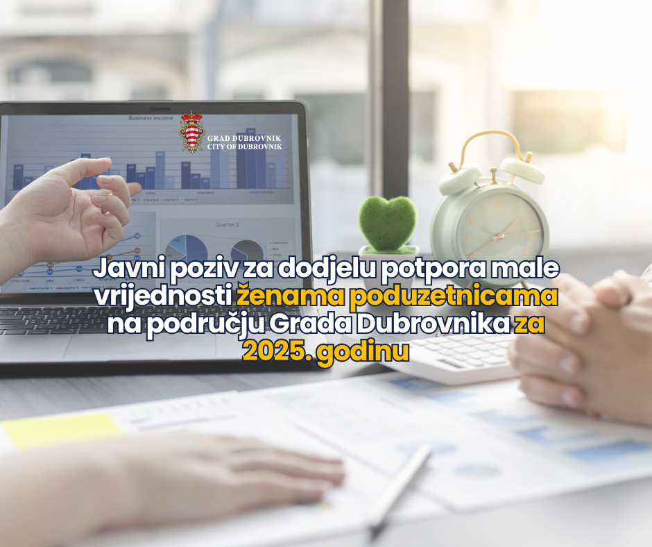 Grad Dubrovnik objavio je ovogodišnji Javni poziv za dodjelu potpora ženama poduzetnicama, a donošenjem novog Pravilnika o dodjelama potpora male vrijednosti ženama poduzetnicama na području Grada Dubrovnika, povećani su pojedinačni iznosi potpora na do 2000 eura po poduzetnici.