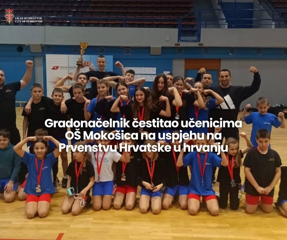 Povodom osvajanja prvog mjesta u ekipnom poretku djevojčica i peto mjesto u poretku dječaka na Prvenstvu Hrvatske u hrvanju, gradonačelnik Mato Franković uputio je čestitku Osnovnoj školi Mokošica.