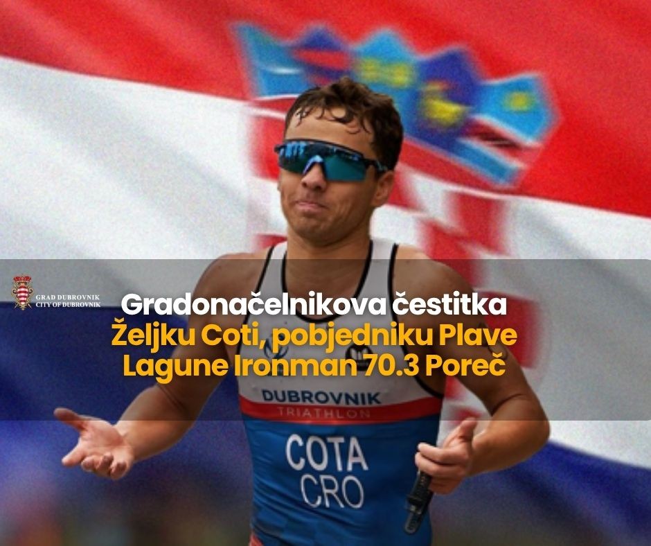 Povodom pobjede na natjecanju Plava Laguna Ironman 70.3 Poreč, gradonačelnik Mato Franković uputio je čestiku Željku Coti. Prenosimo je u cijelosti: