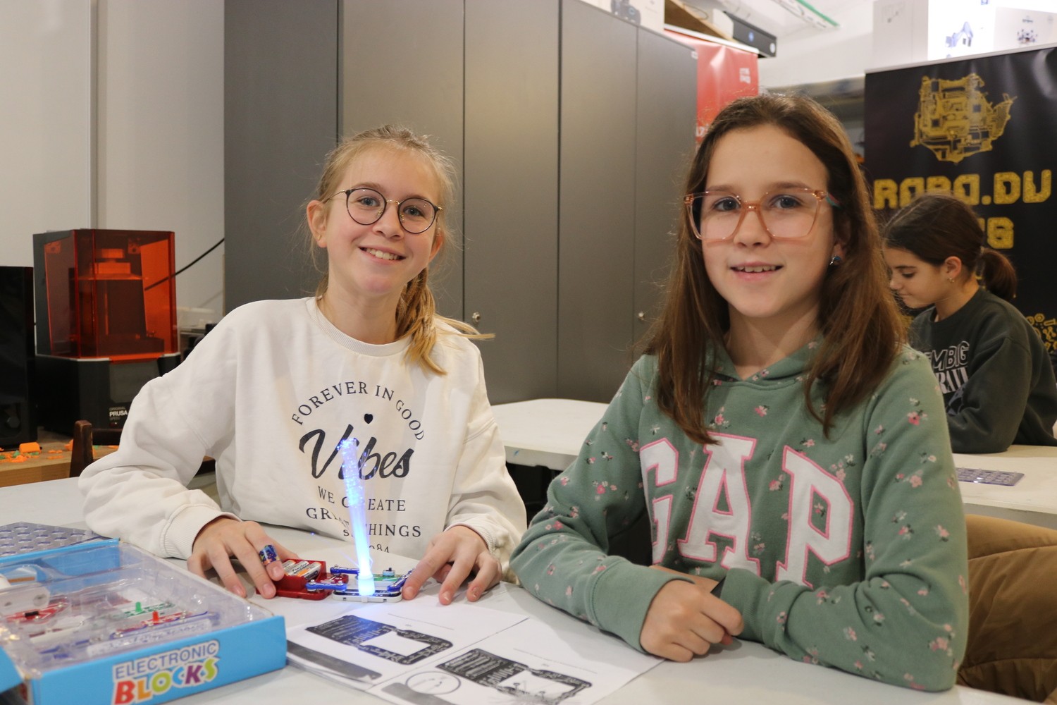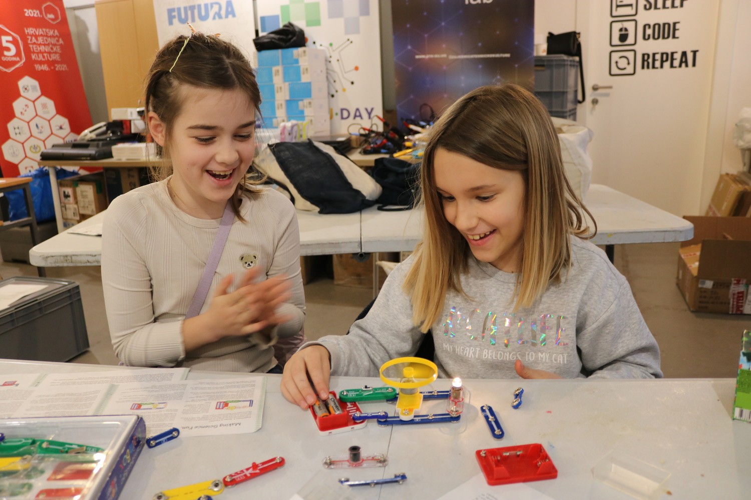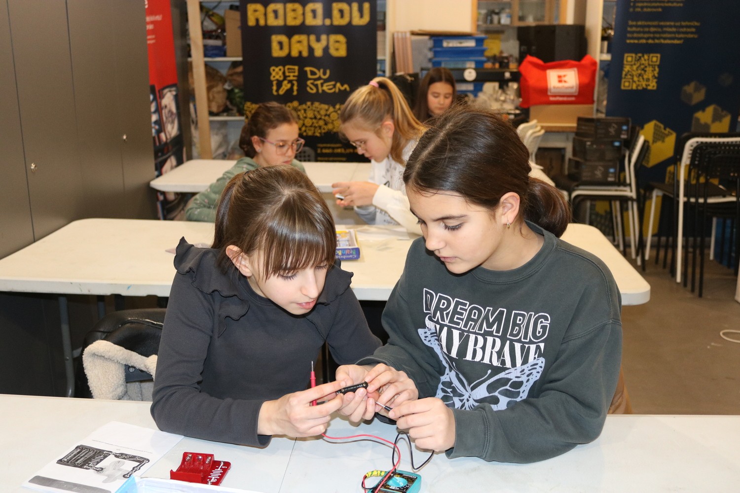 Dinka Lale iz Informatičkog kluba Futura održala je radionicu šarenog strujnog kruga, na kojoj su cure kroz praktičan rad učile osnove strujnog kruga. Spajale su osnovne elektroničke komponente koristeći specijalizirane setove, istraživale kako rade LED diode i ventilatori ovisno o vrsti spoja, a na kraju su imale priliku isprobati i senzor ravnoteže te su naučile koristiti multimetar.