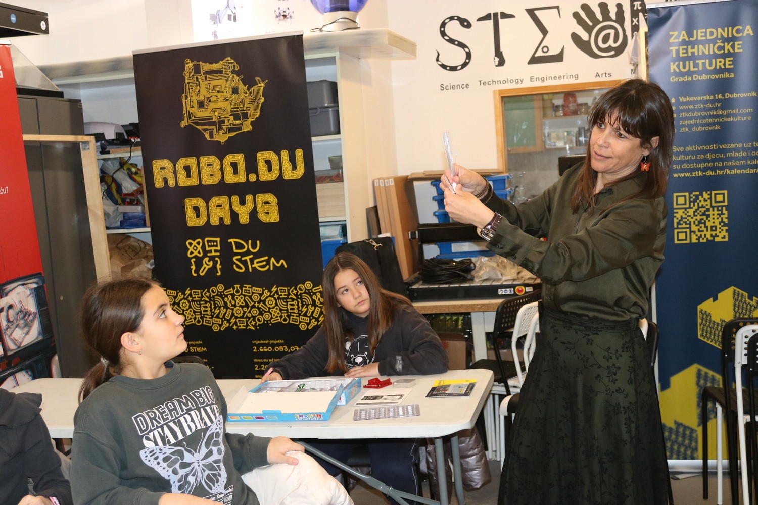 Radionicu LEGO jednostavni i motorni strojevi vodio je tajnik Zajednica tehničke kulture Grada Dubrovnika i Dubrovačko-neretvanske županije. Na radionici su se polaznice zabavile otkrivanjem prirodnih pravila i razumijevanju sila, gibanja i interakcije pomoću jednostavnih i praktičnih vježbi. Koristeći širok izbor LEGO elemenata gradile su, proučavale, testirale i poboljšavale svoje motorne strojeve.