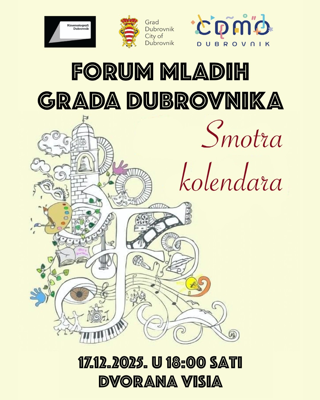 "Smotra kolendara" održat će se sutra, u srijedu, 17. prosinca od 18 sati u dvorani Visia u organizaciji Centra za djecu, mlade i obitelj Dubrovnik u suradnji s Kinematografima Dubrovnik. Riječ je o trećoj aktivnost Foruma mladih Grada Dubrovnika, a program je ujedno dijelom 12. Dubrovačkog zimskog festivala.