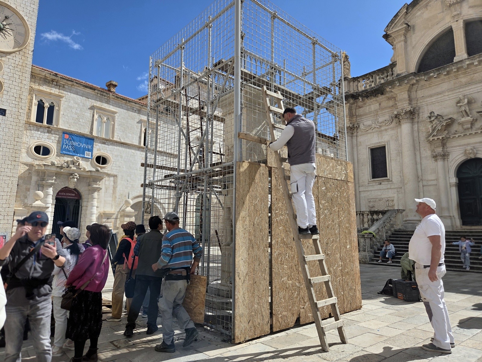 Riječ je o privremenom rješenju koje je, sukladno prema planu aktivnosti, uklonjeno u srijedu, 25.ožujka, po završetku ove faze radova. Nakon potpunog sušenja toniranih rekonstrukcija obavit će se njihov završni pregled i eventualne korekcije prema potrebi.