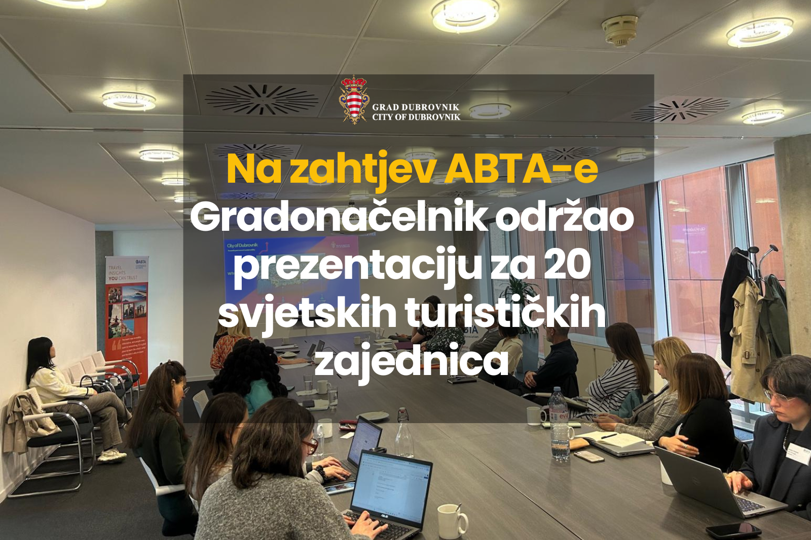 NA ZAHTJEV BRITANSKOG UDRUŽENJA PUTNIČKIH AGENCIJA ABTA - Gradonačelnik predstavnicima 20 svjetskih turističkih zajednica prezentirao Dubrovnik kao primjer održivog turizma
