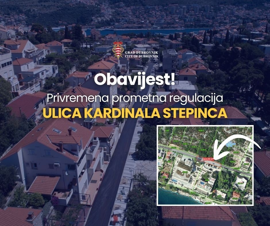 Radi omogućavanja normalnog odvijanja prometa postavit će se privremena prometna signalizacija tako da će se na dijelu Ulice kardinala Stepinca, od Hotela More u smjeru istoka do križanja s Ulicom Iva Dulčića (Pošta Lapad), promet odvijati dvosmjerno uz zabranu prometovanja za teretna vozila i autobuse.