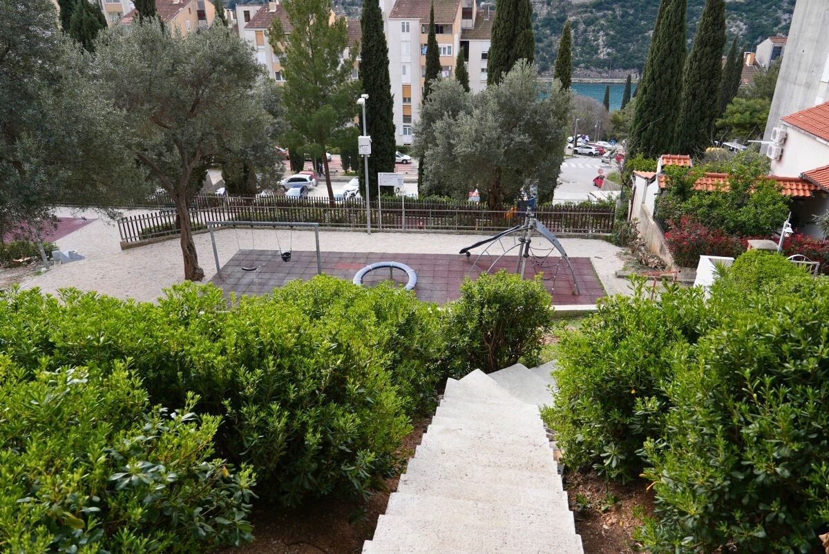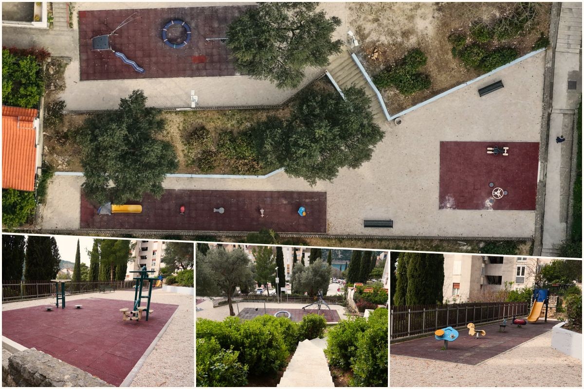 Uklonjene su oštećene antistres gumirane podloge, odnosno gumene kocke i ugrađene nove. Izrađena je nova betonska ploča i postavljena antistress gumirana podloga ispod sprava za outdoor fitness. Uz druge sitne popravke, zamijenjene su i oštećene drvene letvice te je obojena metalna potkonstrukcija,