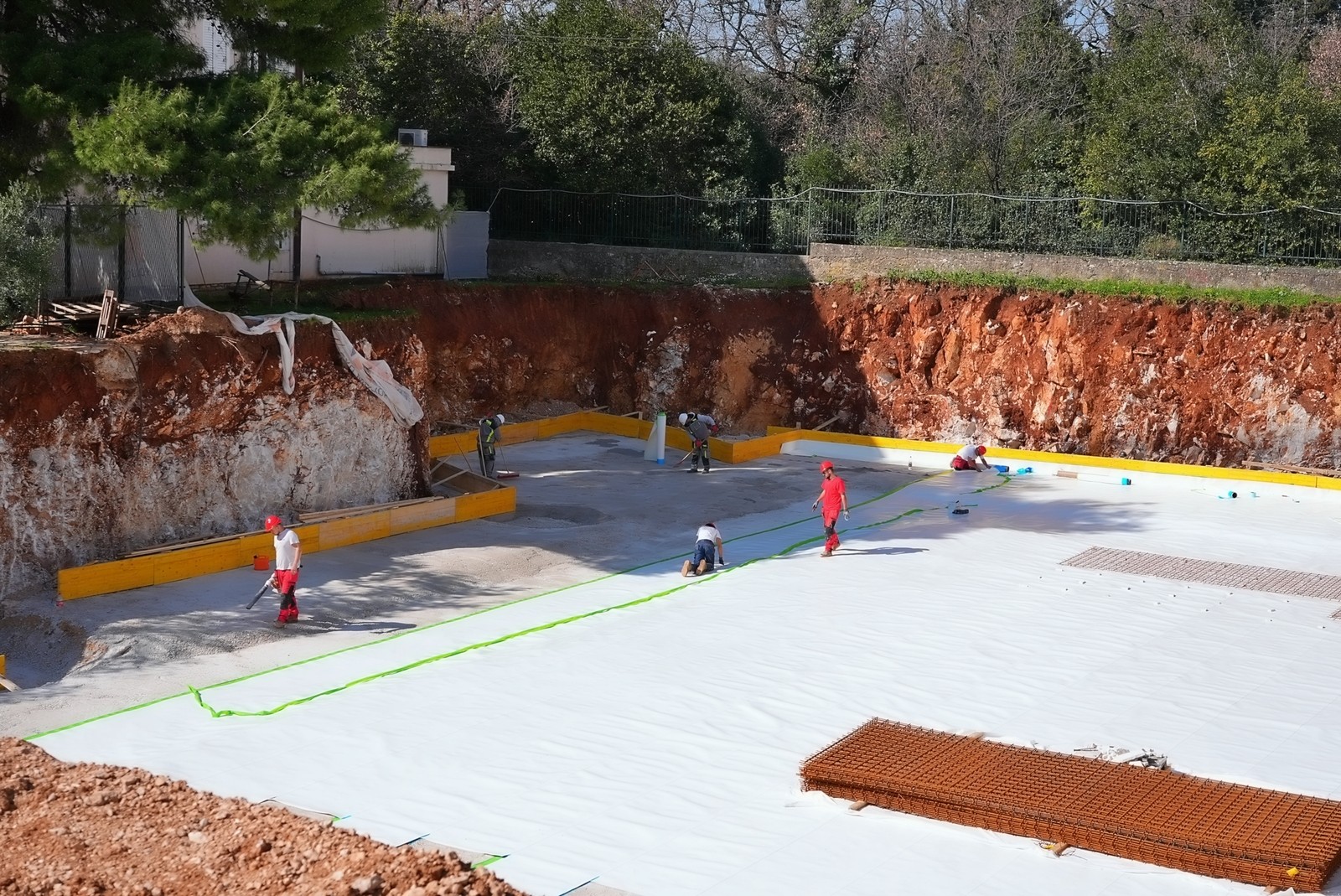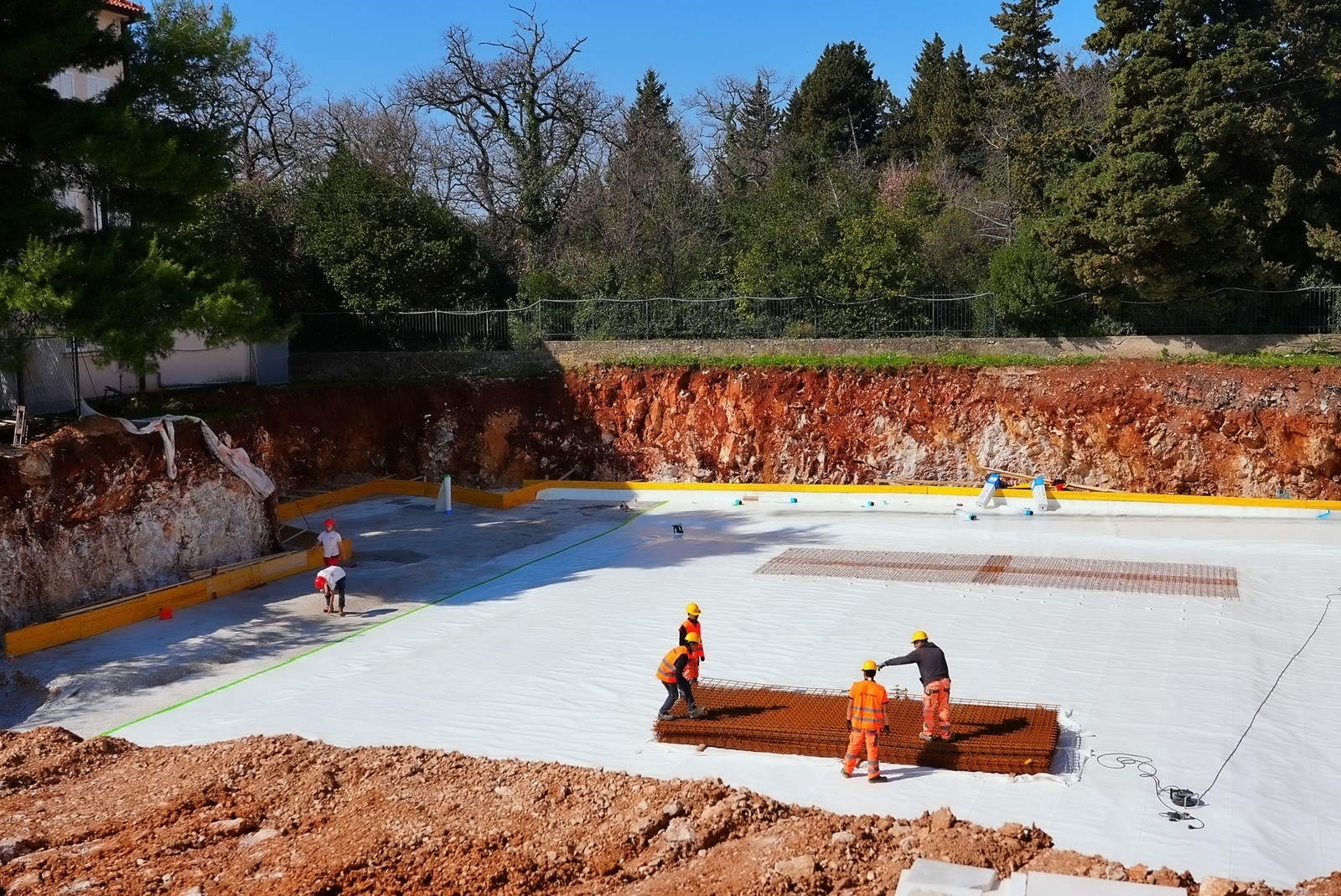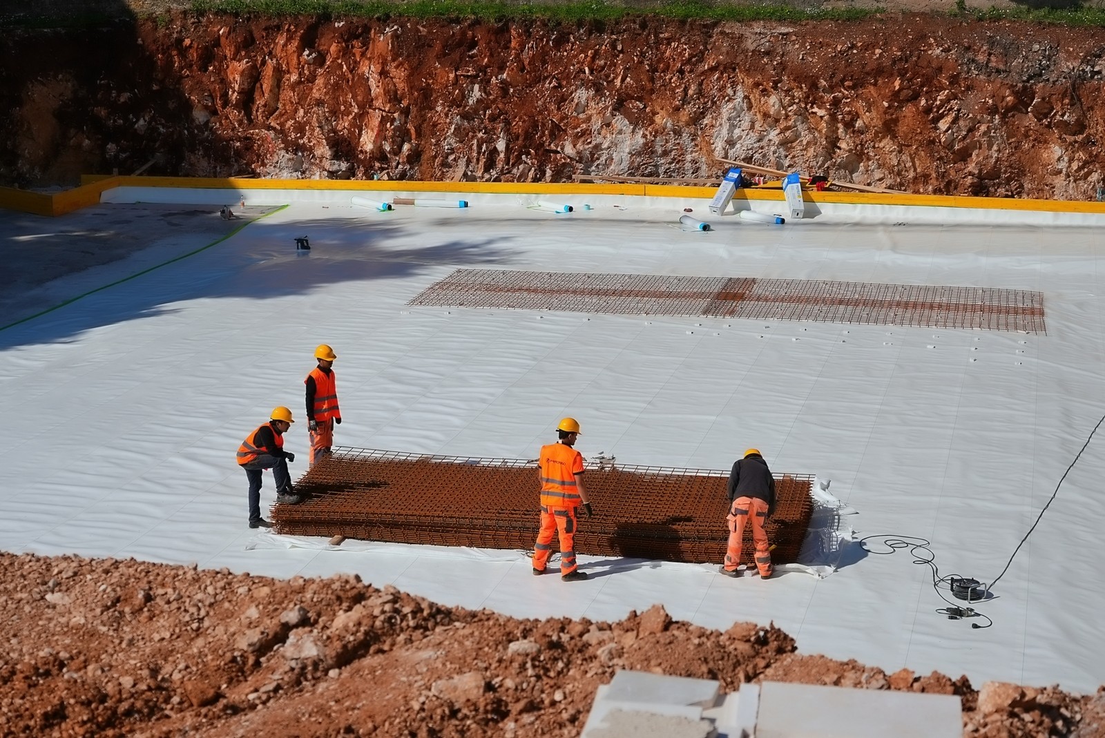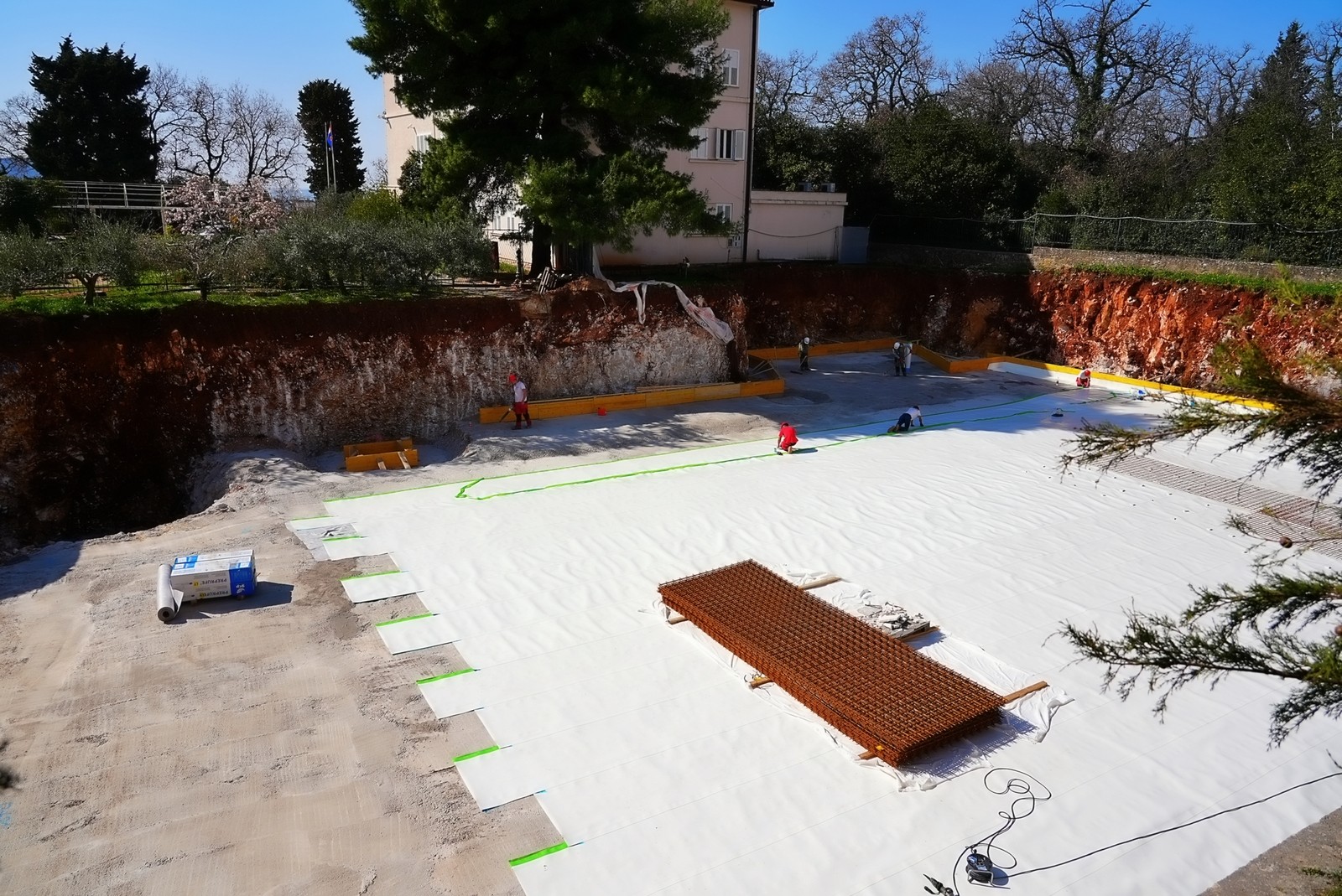 Nakon pripreme i osiguranja građevinske jame, na već izvedeni podložni beton postavlja se hidroizolacija. Započeli su radovi armiranja temeljne ploče dvorane, a slijedi betoniranje temeljne ploče te nastavak radova na konstrukciji dvorane. Radove izvodi tvrtka Texo Molior uz stručni nadzor koji provodi tvrtka Deltagrad.