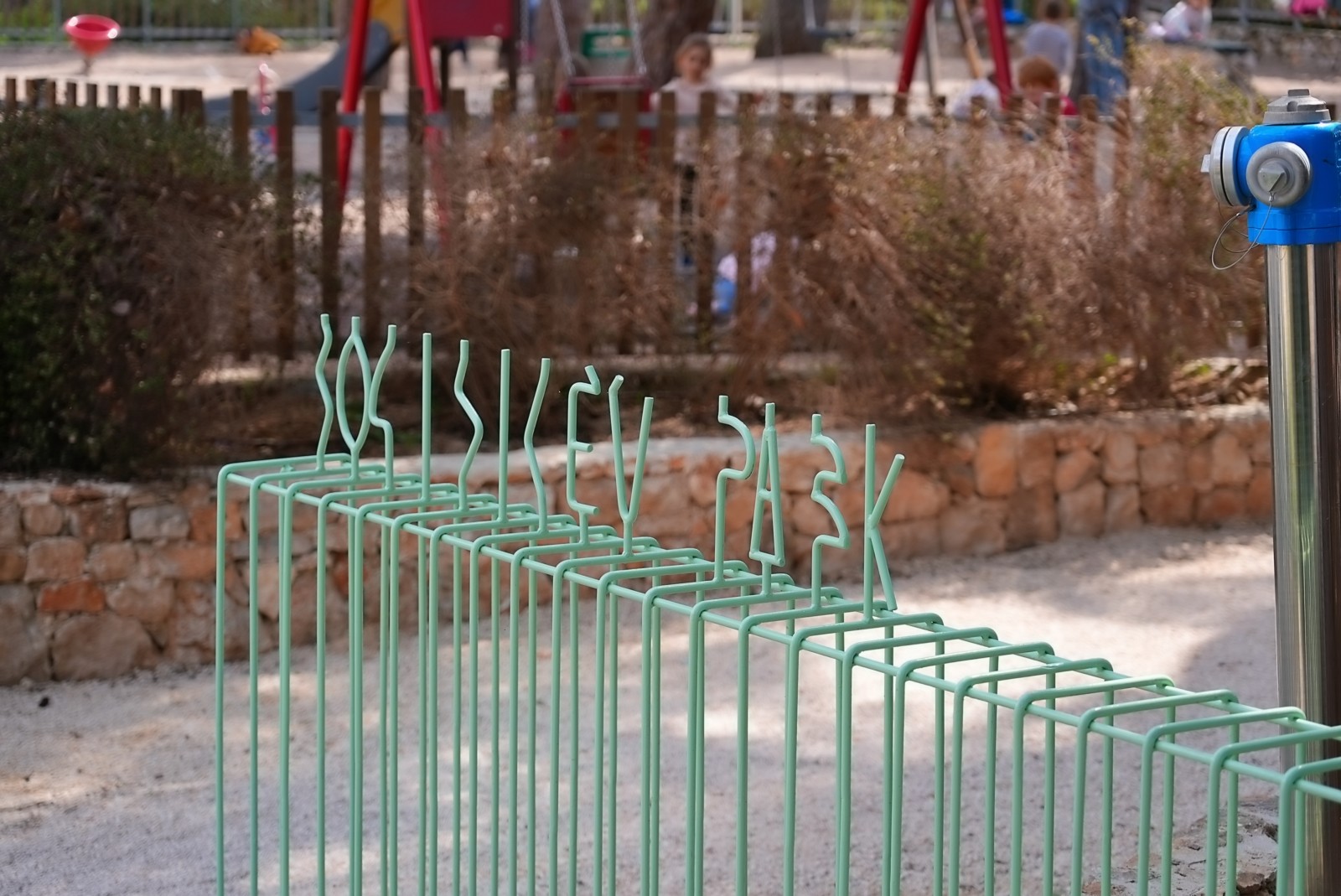 Na ulazu u park nalazi se ulazni portal oblikovan kao lagana, skulpturalna struktura, a u konstrukciju je integriran stilizirani natpis „Bogišićev park“.