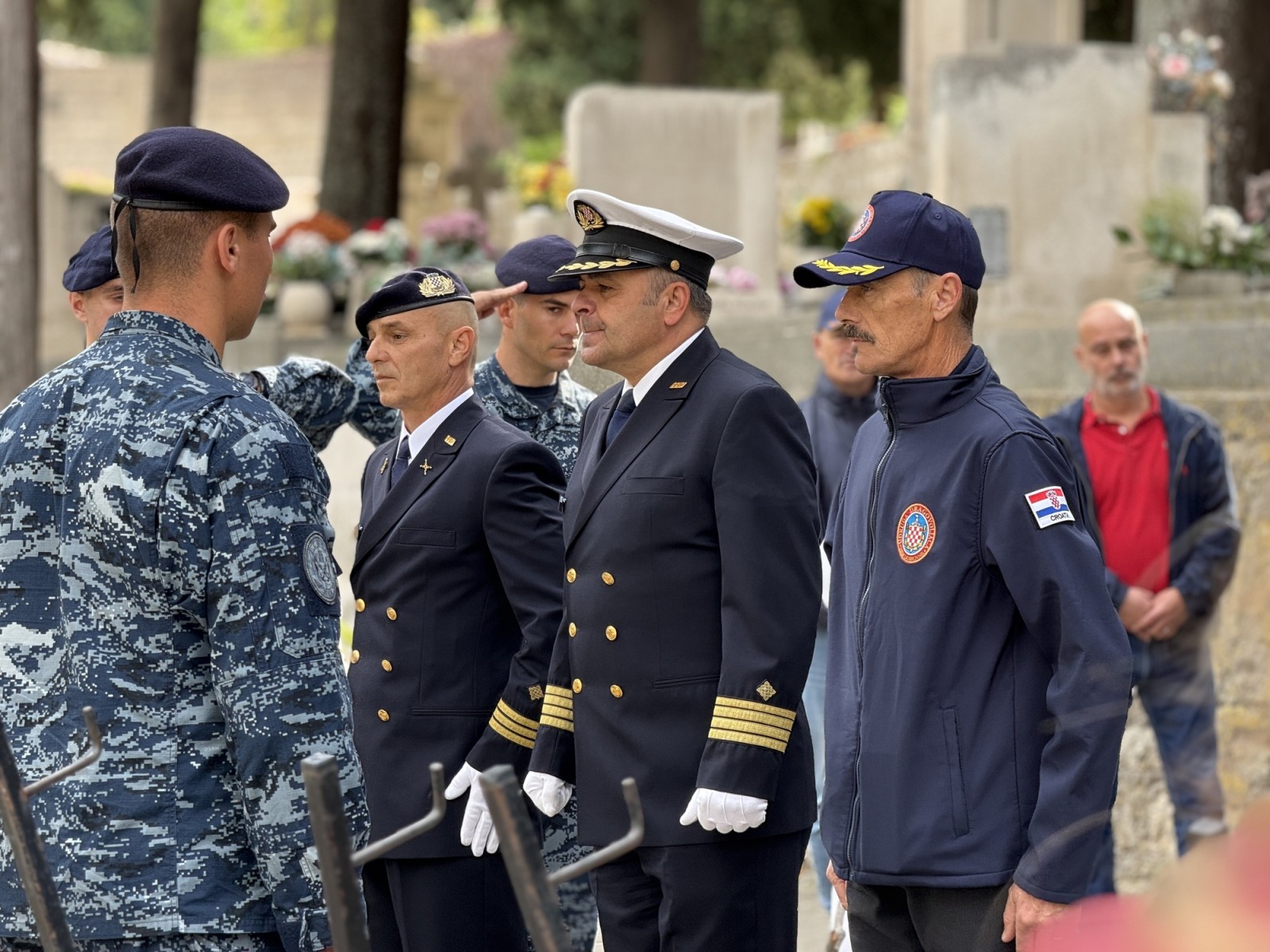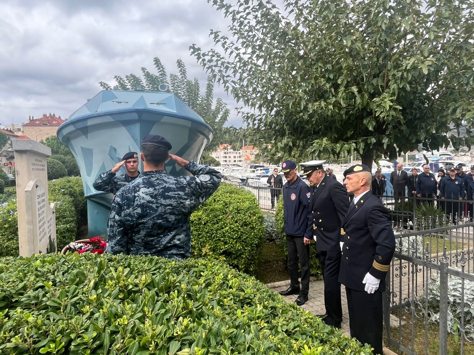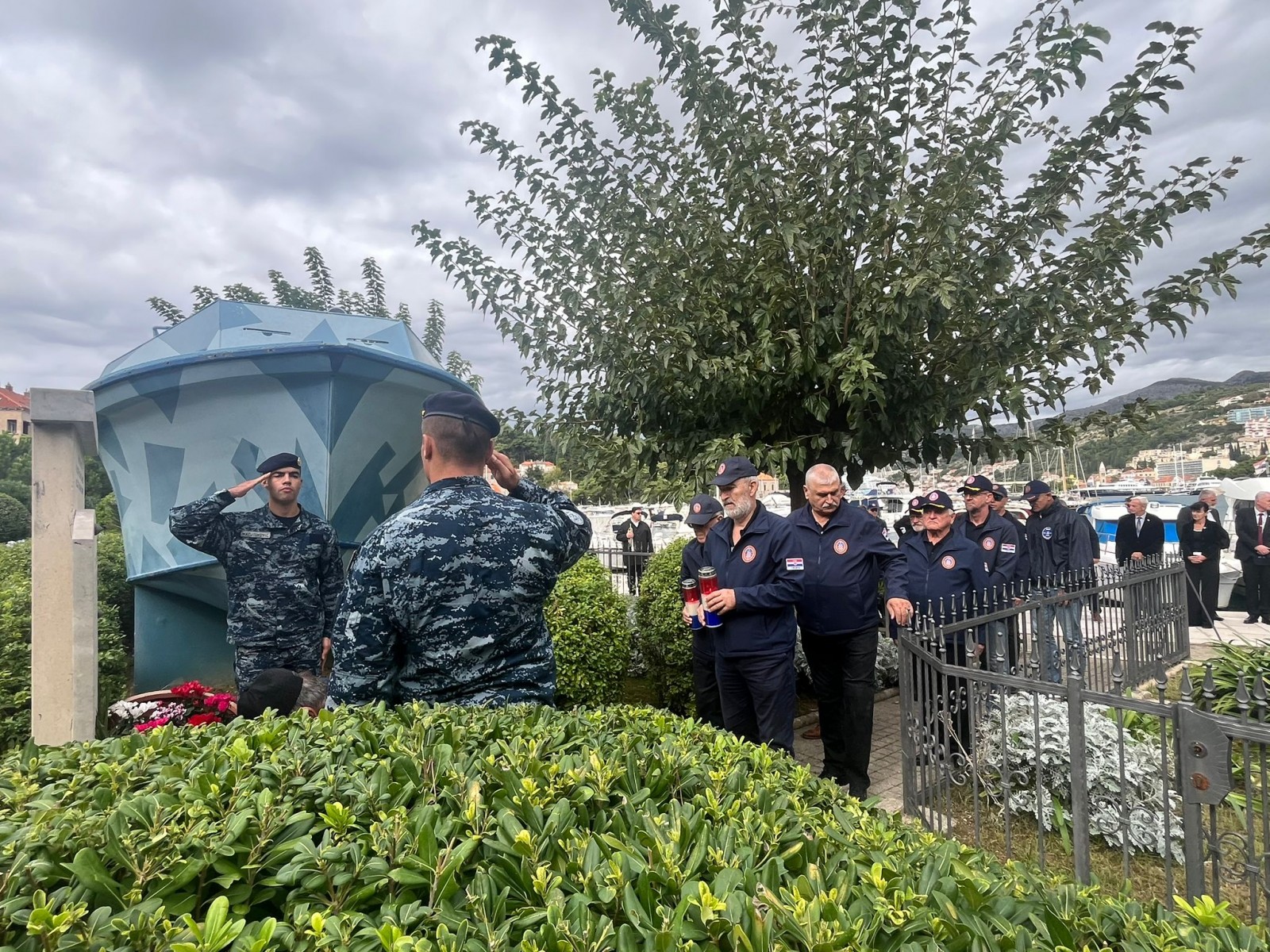 Polaganjem vijenaca i paljenjem svijeća, iskazana je zahvalnost svim pripadnicima Hrvatske ratne mornarice i hrvatskim braniteljima koji su svojim djelovanjem doprinijeli stvaranju i obrani Republike Hrvatske.