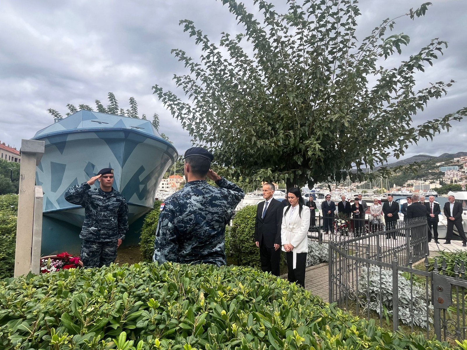 U ime Grada Dubrovnika vijenac su položili gradonačelnik Mato Franković, gradski vijećnik Ilija Lučić te pročelnica Upravnog odjela za komunalne djelatnosti, promet i mjesnu samoupravu Matilda Krile Prkoča. Uz izaslanstvo Grada Dubrovnika, počast su odali i predstavnici Dubrovačko-neretvanske županije, načelnik Općine Župa dubrovačka Marko Miloslavić, predstavnici Hrvatske ratne mornarice Dubrovnik, Hrvatskog časničkog zbora Dubrovačko-neretvanske županije, braniteljskih udruga i udruga proisteklih iz Domovinskog rata, kao i članovi obitelji poginulih i nestalih branitelja te brojni građani.