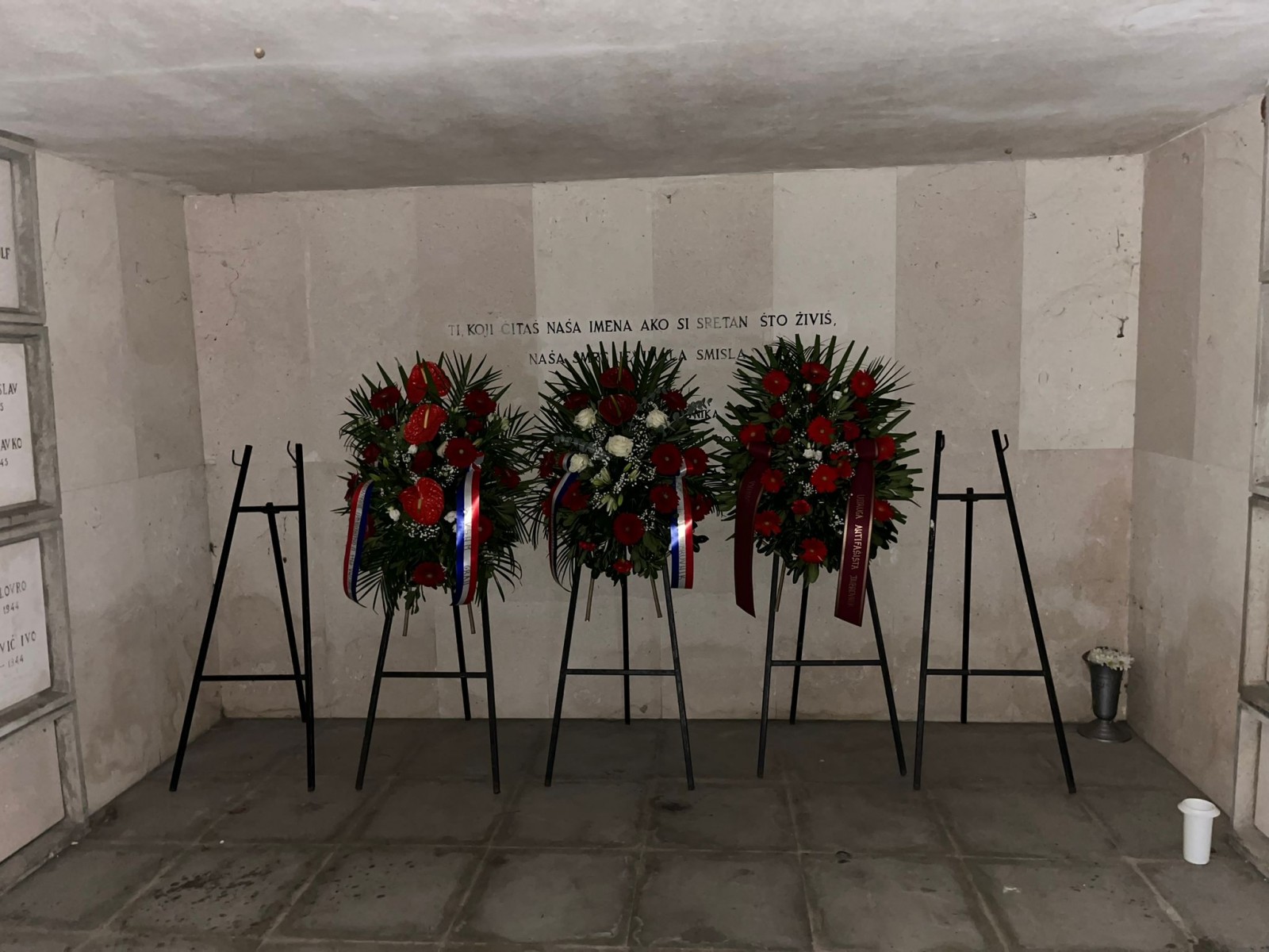 Ispred Grada Dubrovnika, u znak zahvalnosti vijence i svijeće položili su danas u kriptu Spomen groblja gradska vijećnica Olga Muratti i pročelnik Službe za unutarnju reviziju Ivan Bajić.