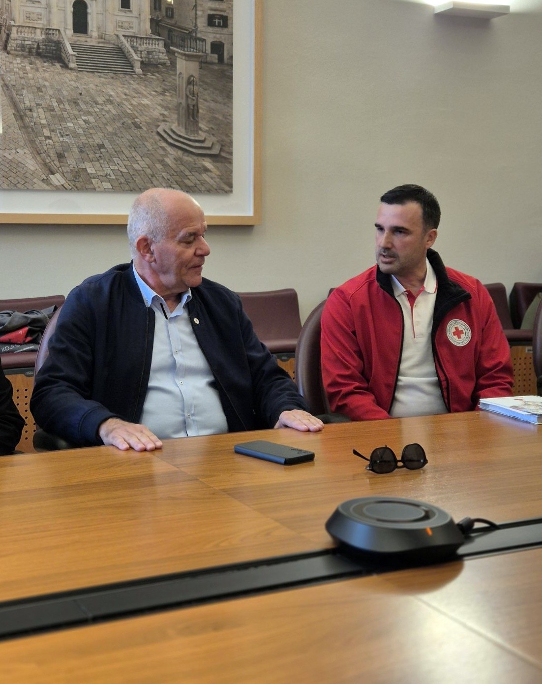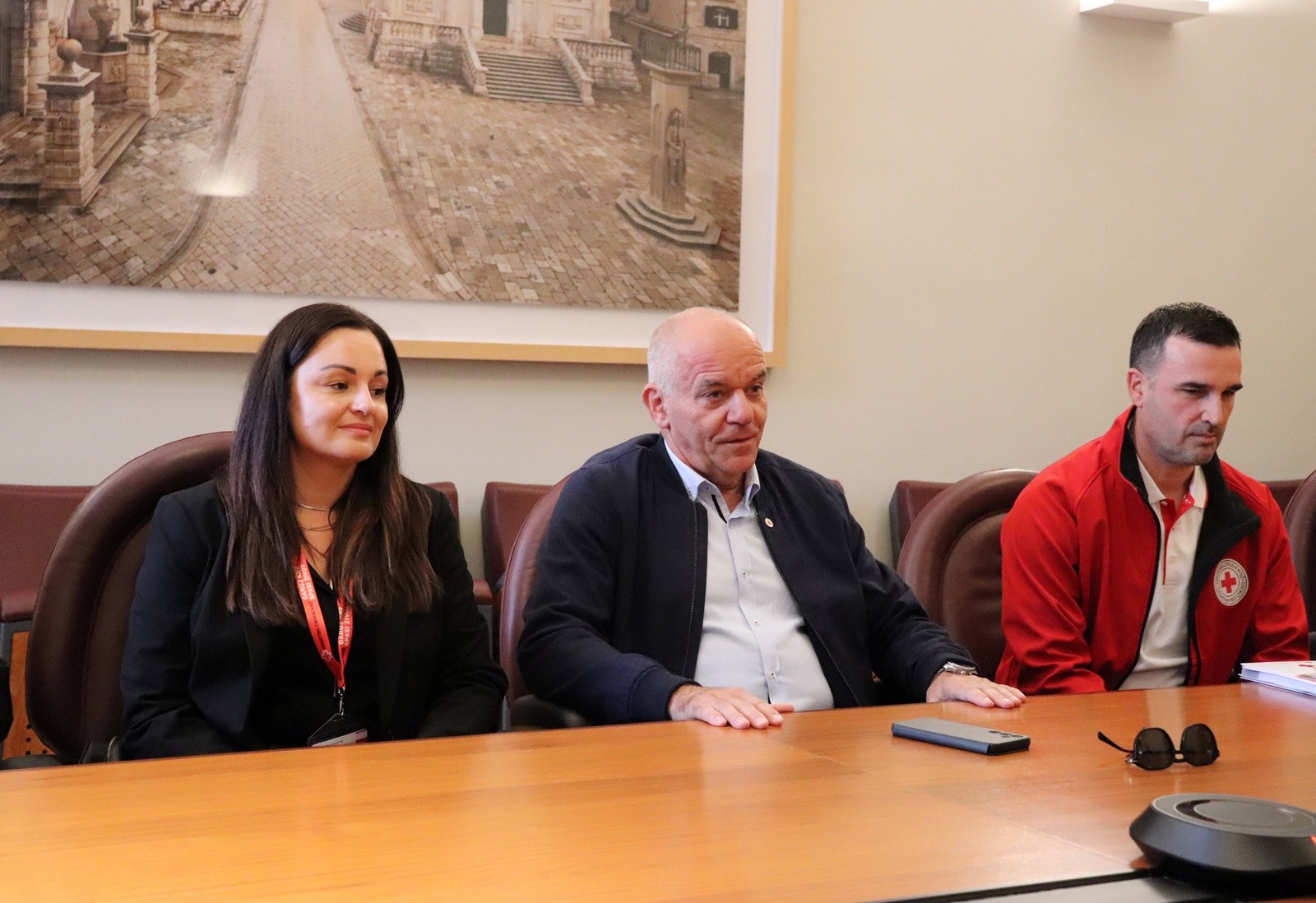Ravnatelj GDCK-a Dubrovnik Tomislav Moretić, predsjednik Društva Živko Šimunović te voditeljica Odjela za transfuzijsku medicinu pri Općoj bolnici Dubrovnik Dolores Martinović, upoznali su predstavnike Grada s aktualnim aktivnostima Crvenog križa.