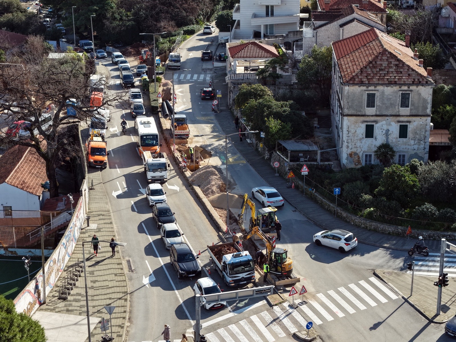 Zbog radova prekopa kolnika ceste i spoja na oborinski kolektor, a u sklopu izgradnje sustava oborinske odvodnje na području semafora u Lapadu, u noći s utorka na srijedu, doći će do uspostave privremene regulacije prometa u ulici Od svetog Mihajla.