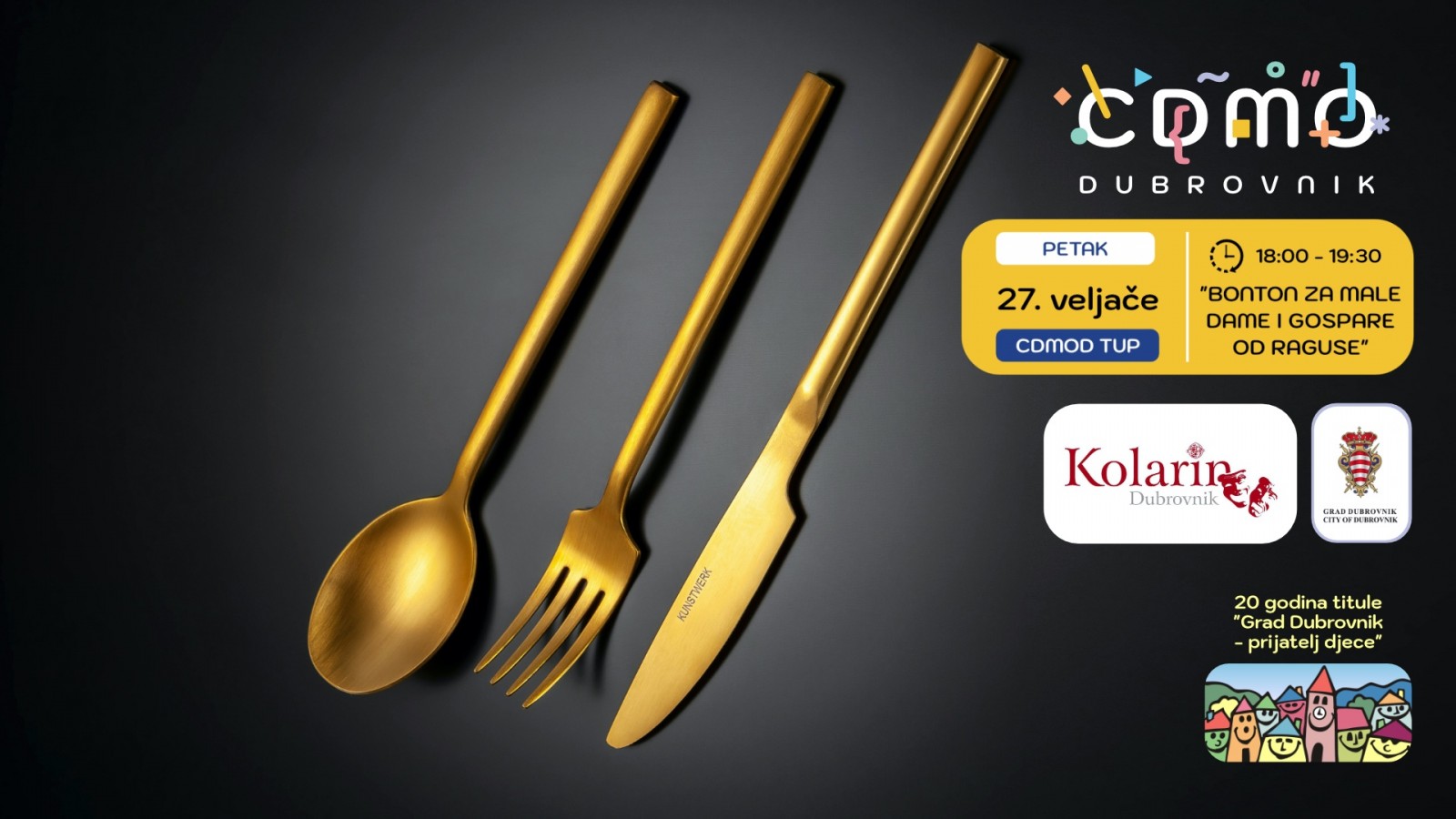 Centralni događaj proslave je sutra, u četvrtak 26. veljače s početkom od 10 sati u prostorima TUP-a u Gružu, a prezentirat će se proces prošlosti, sadašnjosti i budućnosti koji je kroz više od dva desetljeća vodio od dobivanja titule do danas. Na skupu će govoriti čelnici Grada Dubrovnika, županije Dubrovačko-neretvanske, Saveza Društava Naša djeca, Centra za nestalu i zlostavljanu djecu / Centra za sigurniji internet. Ceremoniju će također svojim nastupima uveličati učenici Umjetničke škole Luke Sorkočevića, Biskupijske klasične gimnazije Ruđera Boškovića i Privatne gimnazije Dubrovnik.