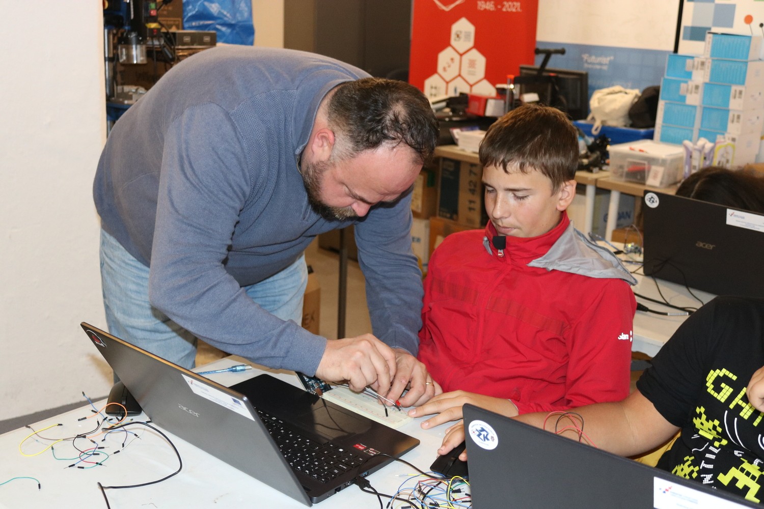 Predavač Tomo Sjekavica predstavio je Arduino tehnologiju, različite vrste Arduino razvojnih pločica te projekte koji se mogu realizirati pomoću Arduina. Kroz praktičan rad polaznika demonstrirao je spajanje i upravljanje osnovnim elektroničkim komponentama. Polaznici su stekli osnovna znanja iz područja elektrotehnike, elektronike i komunikacija. Jedan od zadataka bio je izrada semafora uz pomoć Arduino Uno pločice i drugih elektroničkih komponenti.