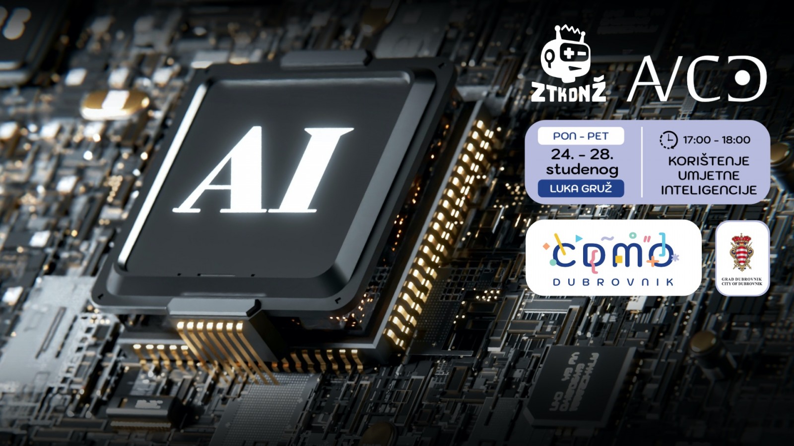 U istom periodu i na istom mjestu, ali sat kasnije - od 17h do 18h će se održavati radionice 'korištenja umjetne inteligencije'. Pojam je to s kojim se svi susreću skoro svakodnevno, ali ovog puta će se polaznicima približiti korisni alati koji mogu zabaviti, nadograditi i zainteresirati. Radionicama se želi pokazati kako umjetna inteligencija ne mora biti nužno samo korisna ili štetna, već korištenjem samo jednog dijela pametnog algoritma / generiranja slike, videa, zvuka iz napisane riječe i upute programu može biti nadopuna u kreaciji! Potrebno je osnovno znanje rada računalom za sve zainteresirane polaznike.