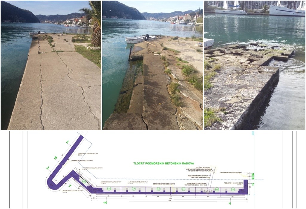 Sanacija obale će se provesti na način da će se najprije izvršiti iskop uzduž oštećenog rubnog dijela obale te će se izgraditi novi obalni zid. Predviđeno je uređenje cjelokupne obalne crte s vertikalnim obalnim zidovima. Na prednjoj strani novog zida, na zapadnom dijelu, postojeća kamena obala se obnavlja u postojećem obliku s kamenim klesancima, koji će se prethodno demontirati, nakon izvedbe vertikalnih obalnih zidova od kalupnog betona ponovno će se ugraditi, uz dobavu i ugradnju nedostajućih kamenih elemenata koji odgovaraju postojećoj vrsti kamenog popločenja.
