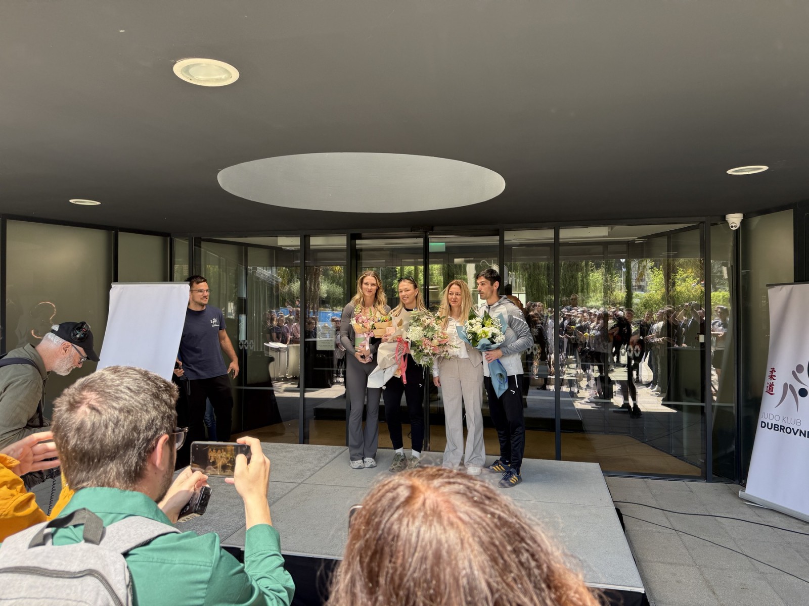 Kako bi pozdravili Ivu Oberan i njezina trenera Matea Semiza te im čestitali, u Studentskom centru okupili su se brojni članovi kluba, sportaši, prijatelji i sugrađani. Zamjenik gradonačelnika Puzović uputio čestitke Ivi Oberan, istaknuvši: „Judo rezultata u Gradu Dubrovniku ne nedostaje, a ti si to potvrdila ulaskom u povijest osvajanjem brončane europske medalje – prve s Europskog seniorskog prvenstva. Čestitam na svemu i znamo da se iza ove medalje krije mnogo truda, odricanja, poraza i pobjeda. Želim ti još puno ovakvih uspjeha i ne sumnjamo da će ih biti još mnogo."
