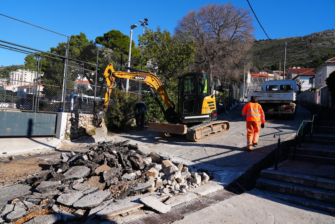 Danas, u ponedjeljak, 29. prosinca 2025. godine, započeli su radovi na asfaltiranju dijela Ulice Antuna Gustava Matoša u Gružu, na potezu kod OŠ Ivana Gundulića.