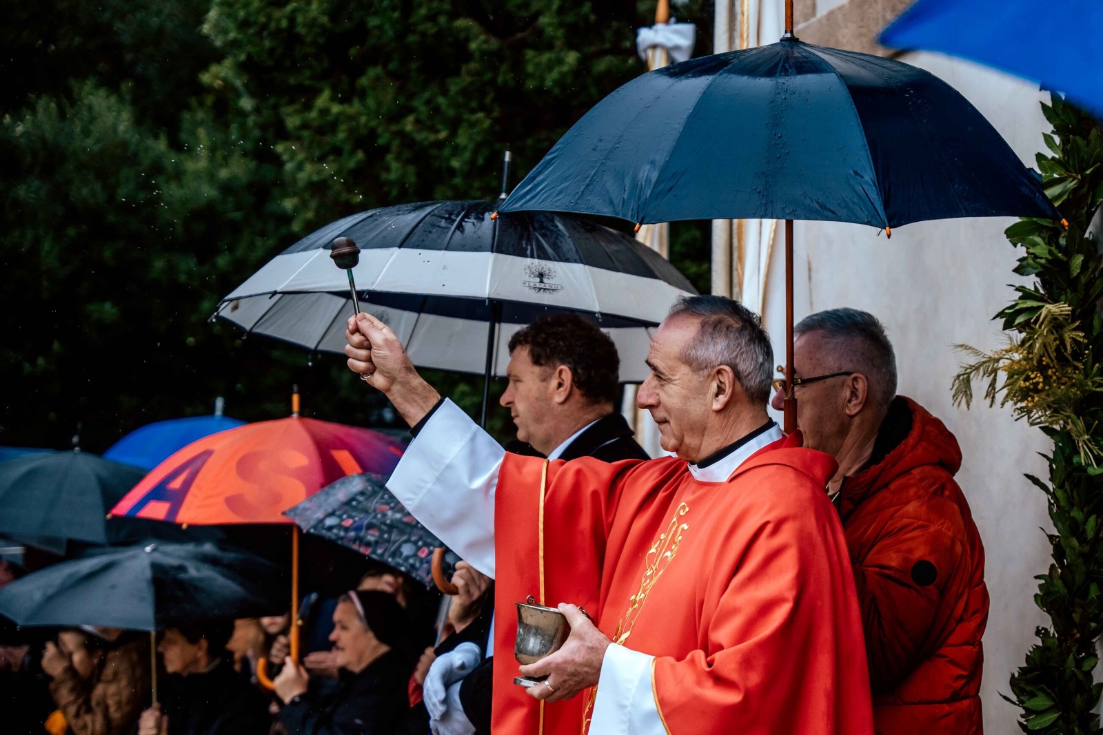 Nakon mise, procesija je ponovno krenula natrag prema Gradu. Barjaci su se poklonili pred Parčevom crkvom, a prisutnima se prigodno obratio rektor crkve sv. Vlaha don Ivica Pervan.