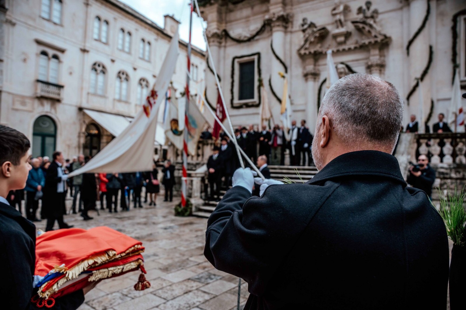 Festanjuli Maro Čoić i Niko Prokurica spustili su barjak sv. Vlaha sa standala ispred zborne crkve sv. Vlaha uz pjevanje Himne sv. Vlahu te su uz himnu Republike Hrvatske podignuli državnu zastavu čime je zatvorena još jedna Festa.
